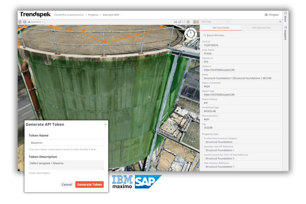 Photogrammetry, LiDAR, laser scans, thermal imagery and BIM. You can also import CSVs with geolocation data and export to GIS, CAD and point cloud formats. The system integrates with SAP, Maximo and other asset management systems via API.