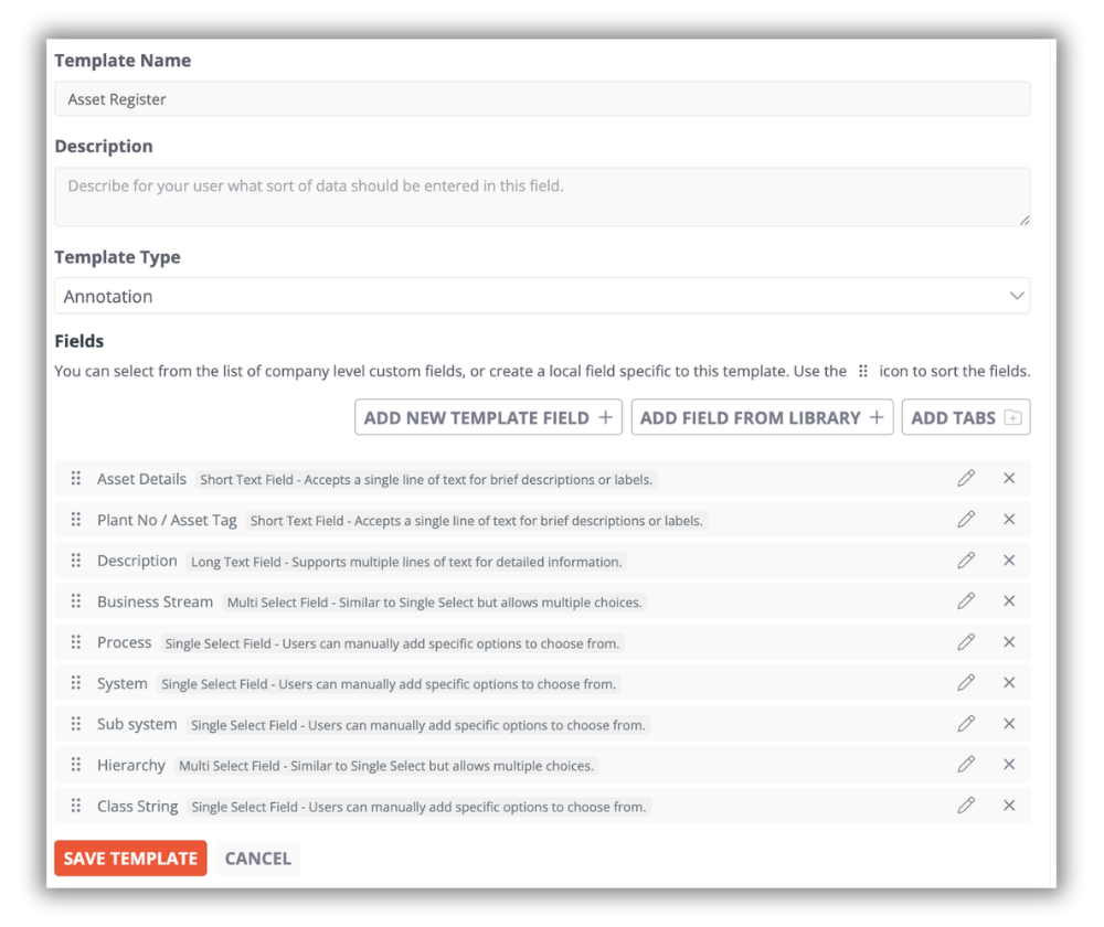 Customisable template fields