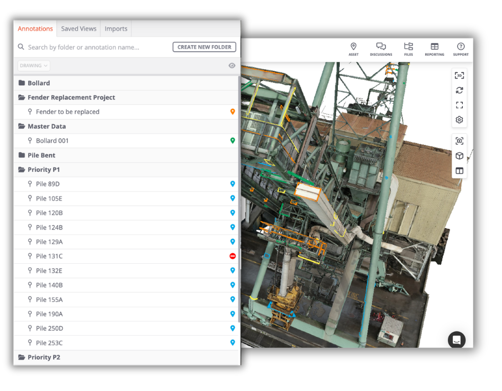 Every annotation, measurement, and report is anchored to your asset's 3D record. Nothing gets lost.